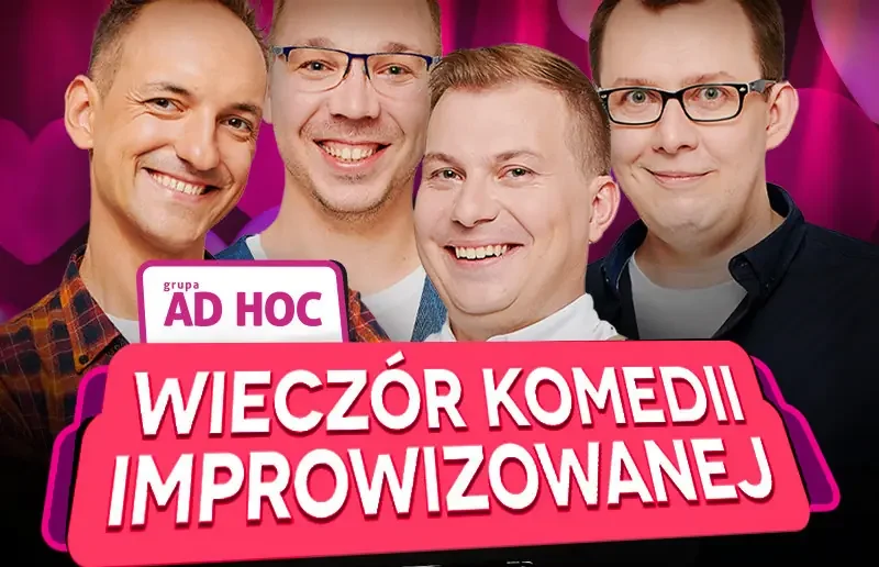 Grupa AD HOC – Powstała w 2008 roku i jako jedna z pierwszych w Polsce zajęła się improwizacją komediową. Przez 15 lat swojej działalności zagrała blisko 600 występów przed tysiącami widzów w całym kraju. Czego możecie się spodziewać? Wszystkiego!